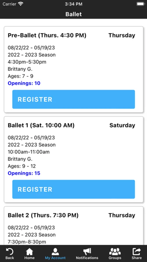 The AKA Dance app allows you to manage your account with ease, register for classes, parties, and special events. You'll also receive important notifications about class changes, closings, registration openings, special announcements, and upcoming events.