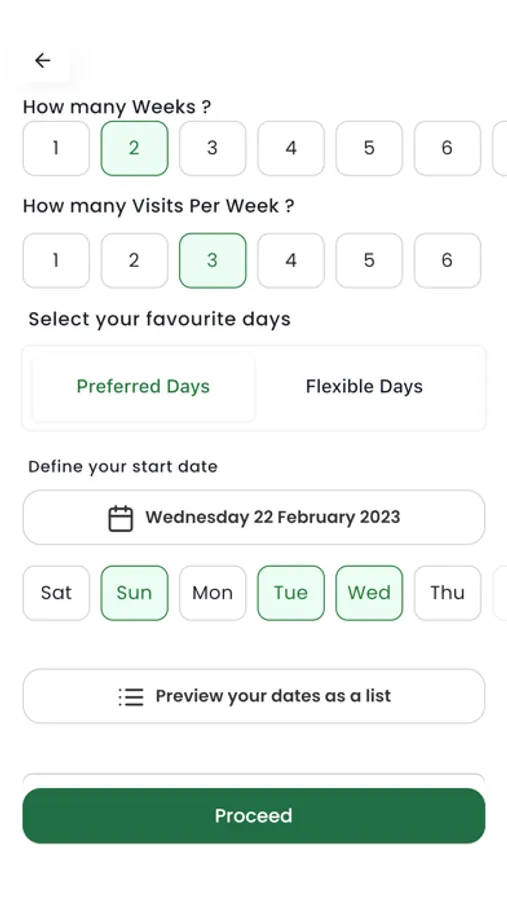 - Select preferred day and time