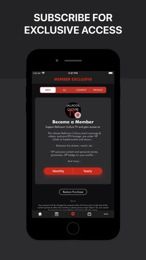 Ballroom Culture TV Official App is free. Subscriber content is available for a low monthly fee.