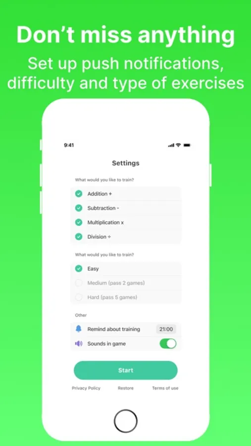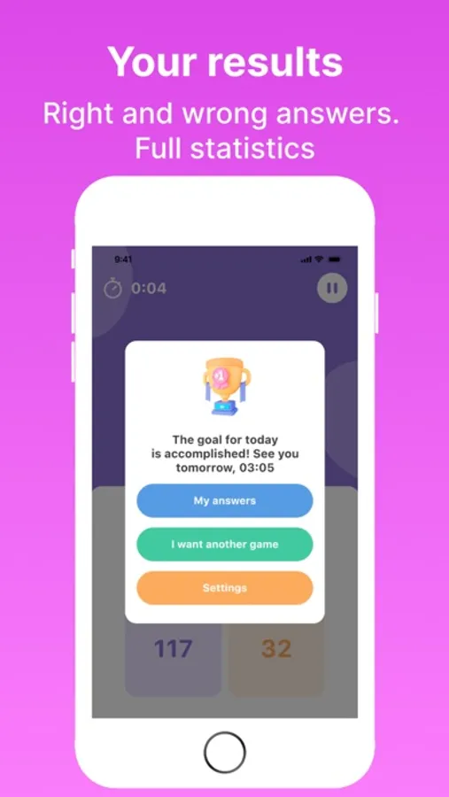 - Reminder about training: you can set a special time, we'll send push-notifications, so you'll not forget about daily training your brain;