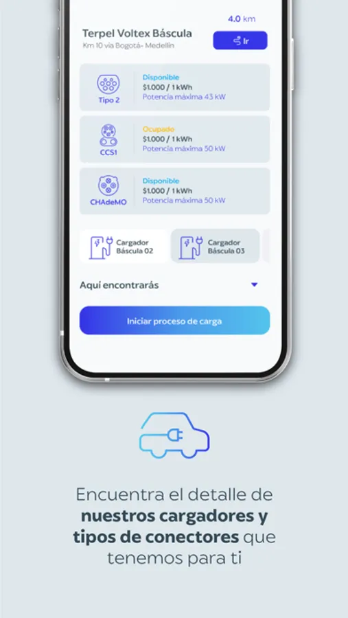 Terpel Voltex les brinda a los usuarios de vehículos eléctricos la posibilidad de recorrer las principales carreteras que unen el territorio nacional, sin limitarse por la autonomía de sus vehículos. Impulsando la “des urbanización” y masificación del vehículo eléctrico, Terpel trae para ti un app en la que pondrás consultar las estaciones de carga más cercanas y operarlas desde tu teléfono móvil.