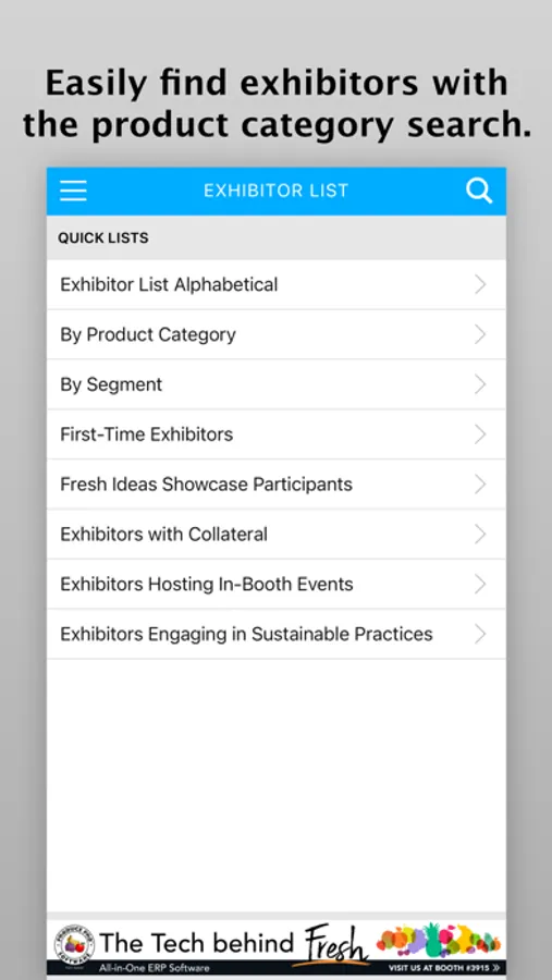 -Search the full exhibitor directory or filter by product categories or first-time exhibitors