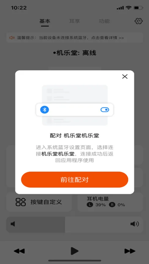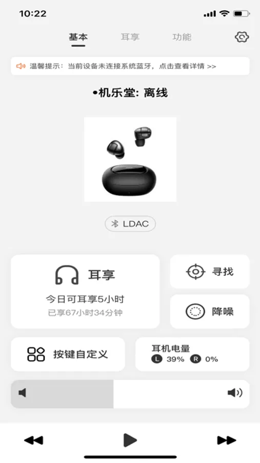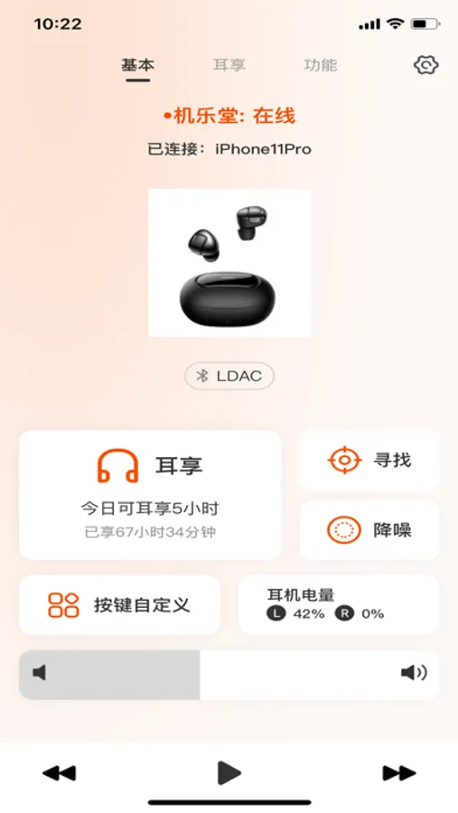 悦享悦听,是一款方便实用且基于蓝牙设备的耳机助手。通过蓝牙开关控制连接、搜索与配对,可个性化设置耳机左右按键不同操作,三击多功能。运动匹配场景路线,运动时间与运动里程。可根据场景式调试降噪模式与环境音模式,在运动时既可以充分感受音乐的高清无损,也可以通过环境声反馈注意自身人身安全。