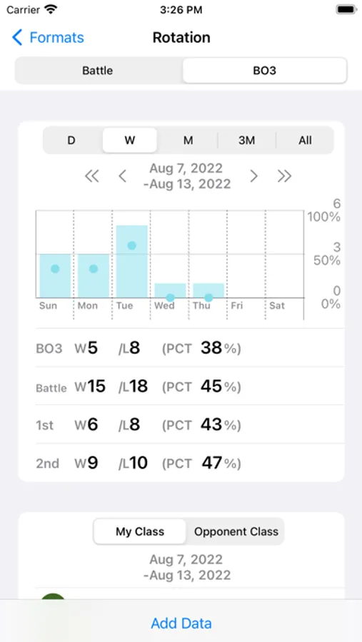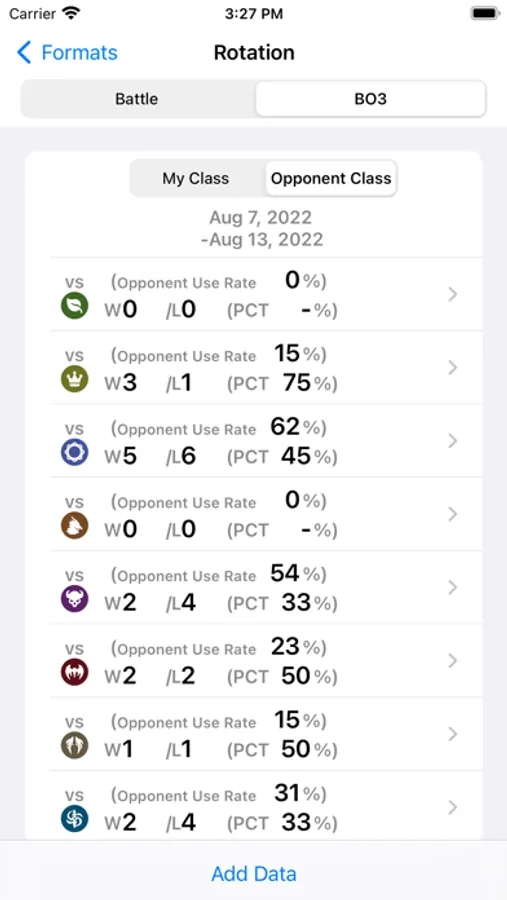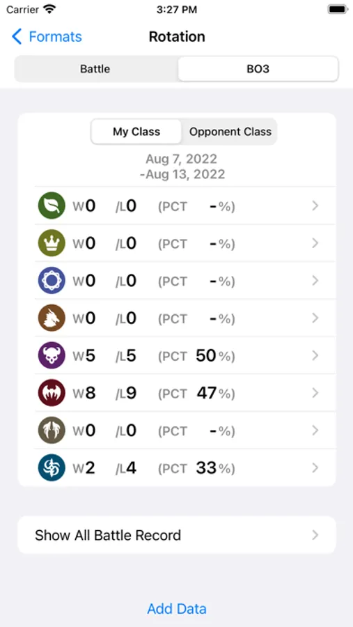 - Check the number of wins/loses, win rates, and use rates for a certain period and each class, each deck.