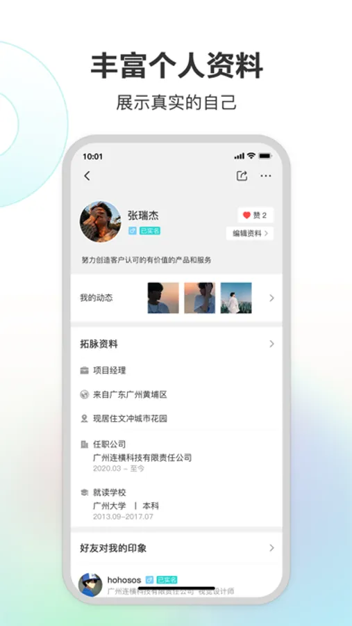·个性签名:不同位置展示不一样的个性签名,展示精彩多面的自己。