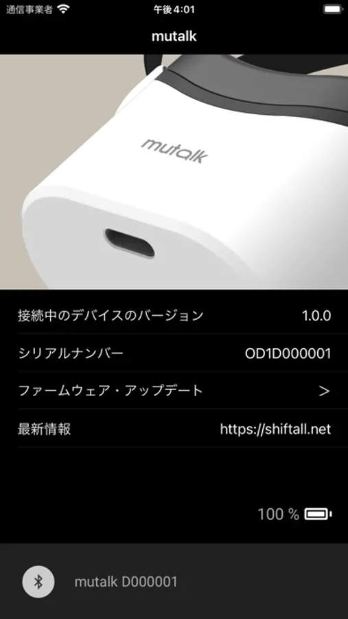 ・「mutalk」のファームウェアバージョンを確認することができます。