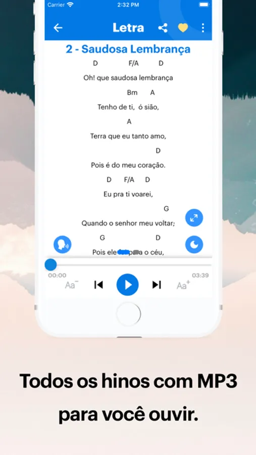 - Compartilhe letras de hinos com seus amigos e familiares.