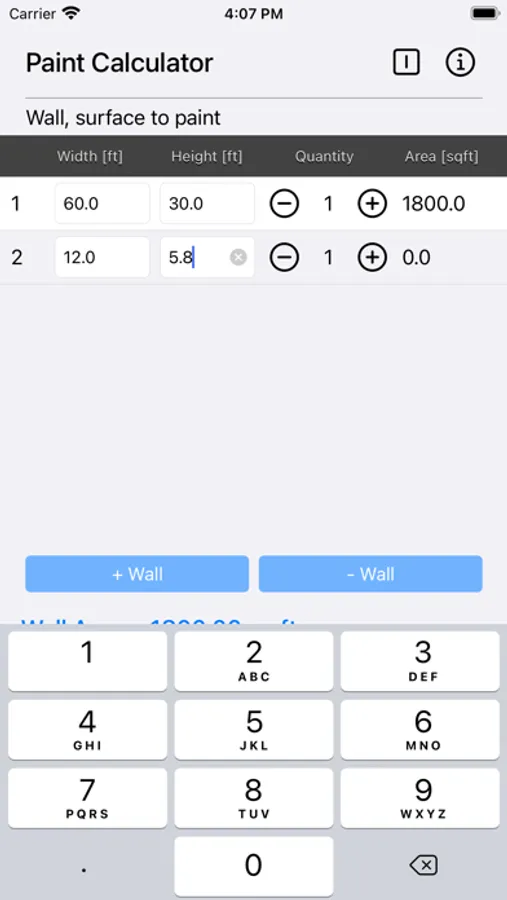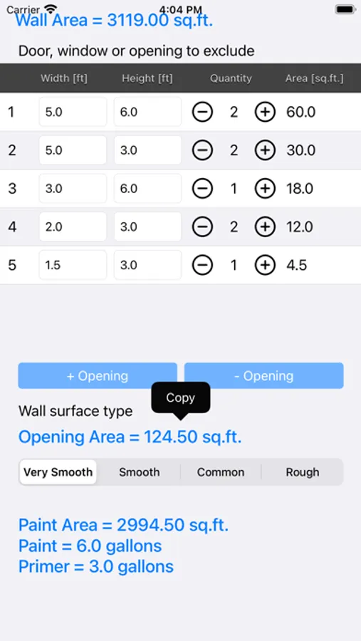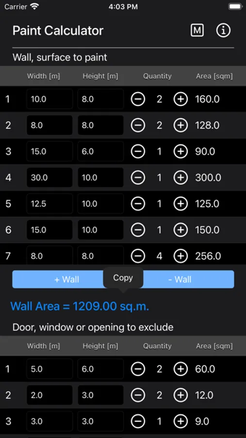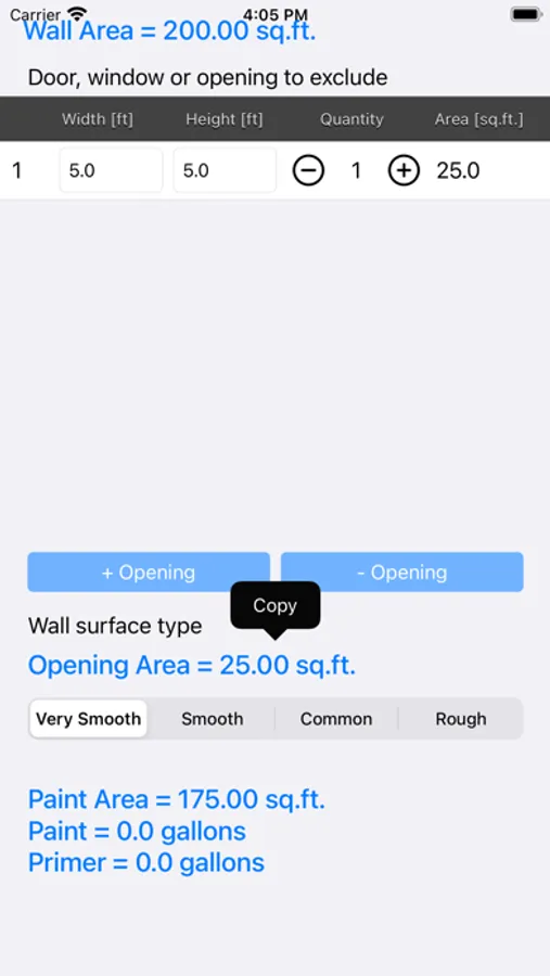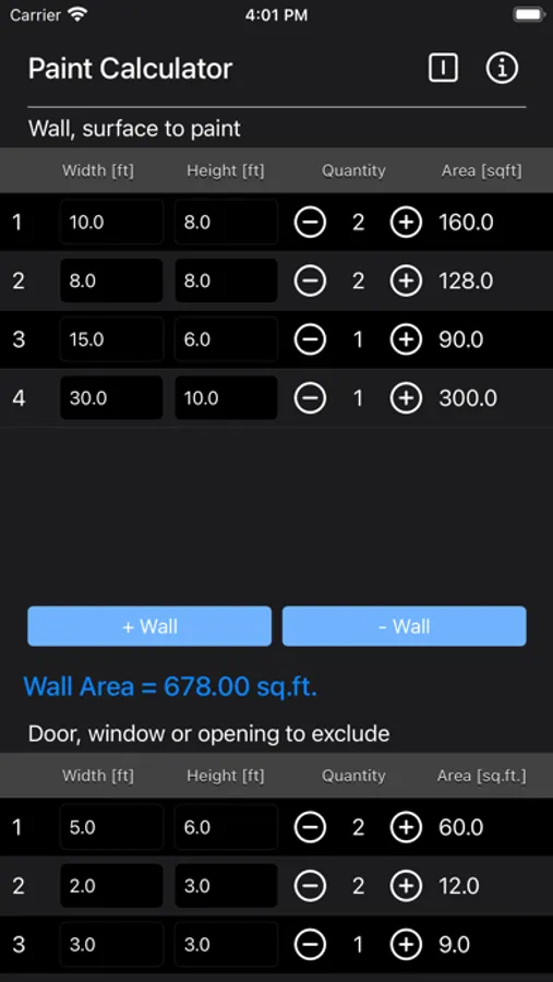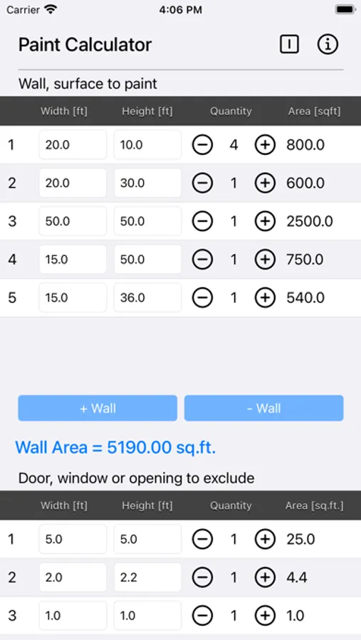 Enter the dimensions of your walls and then decide the dimensions of the areas you don't want to paint. These could include windows, doors or openings.