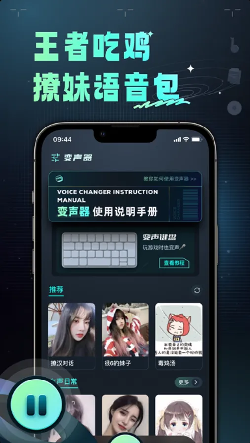 「聊天语音包」海量王者吃鸡聊天语音包、萌妹温柔男声、搞笑鬼畜语音包等....支持分享到微信、QQ等其他软件,操作简单