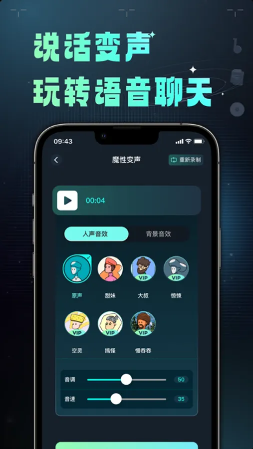 「魔性变声」支持多种变声音效,例如:大叔、萌妹、老人、小孩、正太等等,你要的全都有!