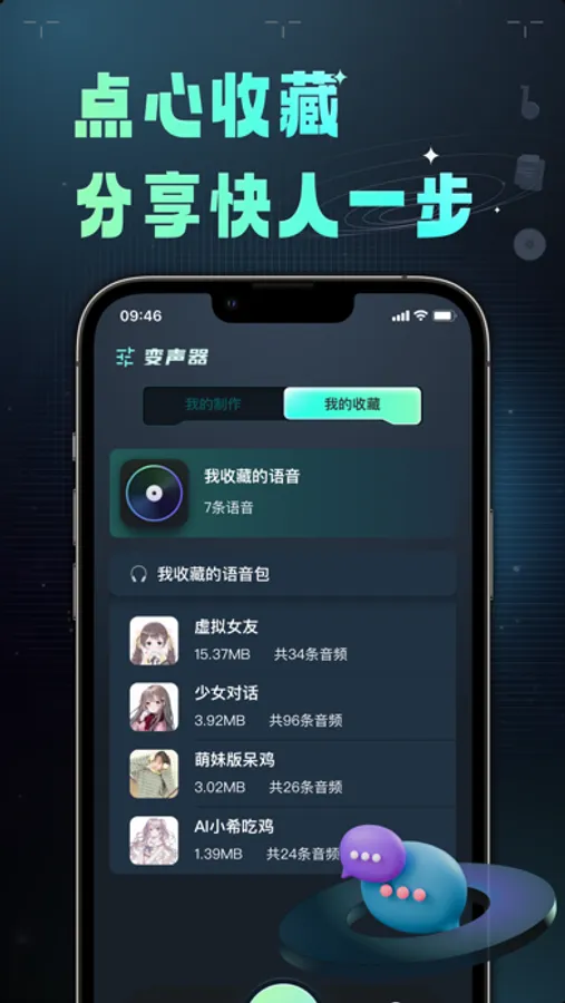 「收藏夹」把喜欢的录音、变声加入收藏夹,支持能够无限制地添加收藏,十分便捷。