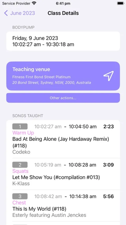 It automatically keeps a history of when and where you played every track. Easily keep a log of all your participant attendance so you can see how things are trending. Generate a report of all your classes in a time range to help with your invoicing.
