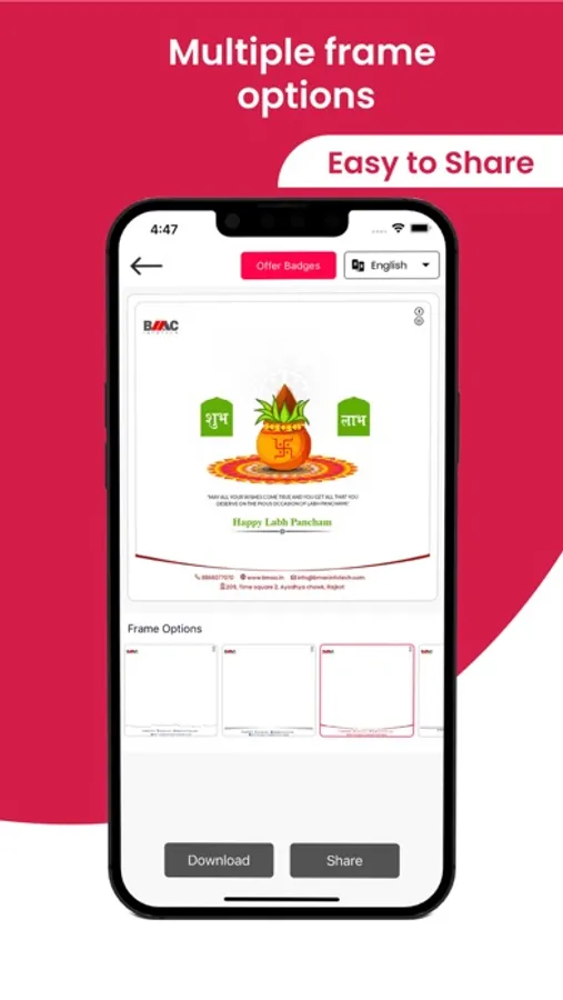 With just one click, you can share posters and videos across many social media platforms, including WhatsApp, Facebook, Instagram, Twitter, Pinterest, Snapchat, YouTube, and Insta Reels.