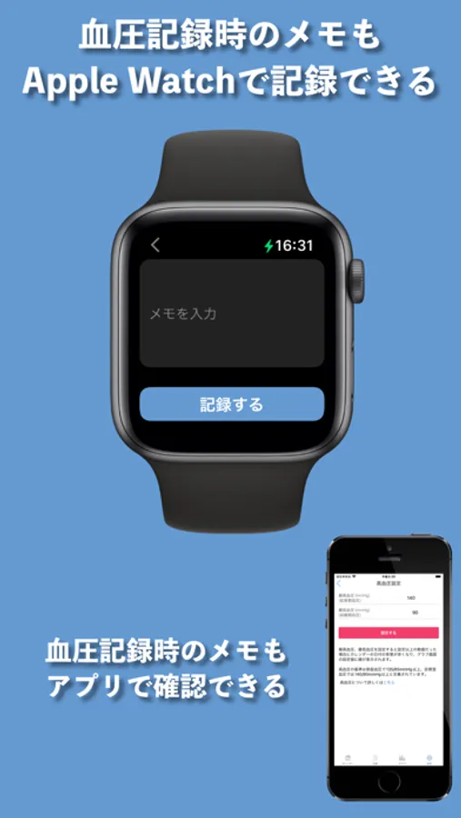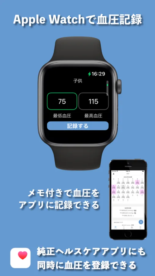 - 純正ヘルスケアアプリにも同時に血圧を記録