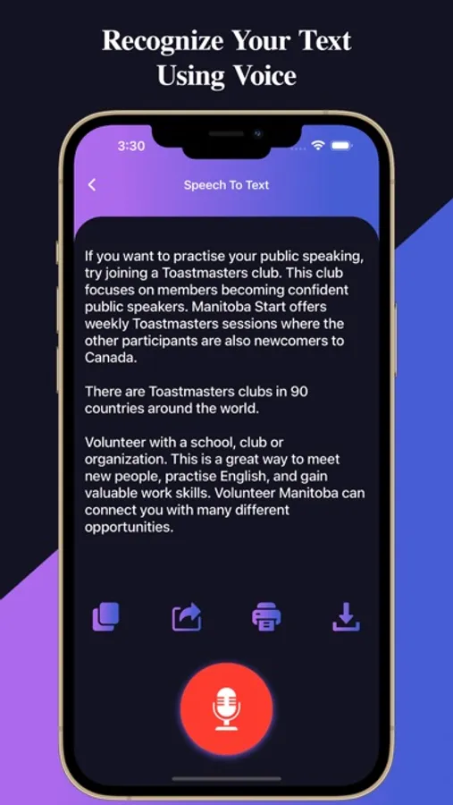 Speech To Text: Voice Notes is easy to use. Users can easy to convert Speech to text and Text to Speech using a single click.