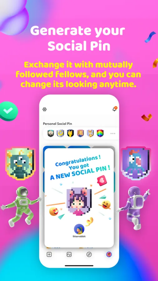 This is a new way to make friends! Instead of shaking hands or give a hug, you can exchange Social Pins in HOOH. It is a proof of social network scarcity that builds up your own exclusive social circles and follower equity system. This Social Pin is a NFT that could be traded. The value of your Social Pin may increase while your reputation and influence grow in HOOH. You could recreate your Social NFT repetitively according to demand.