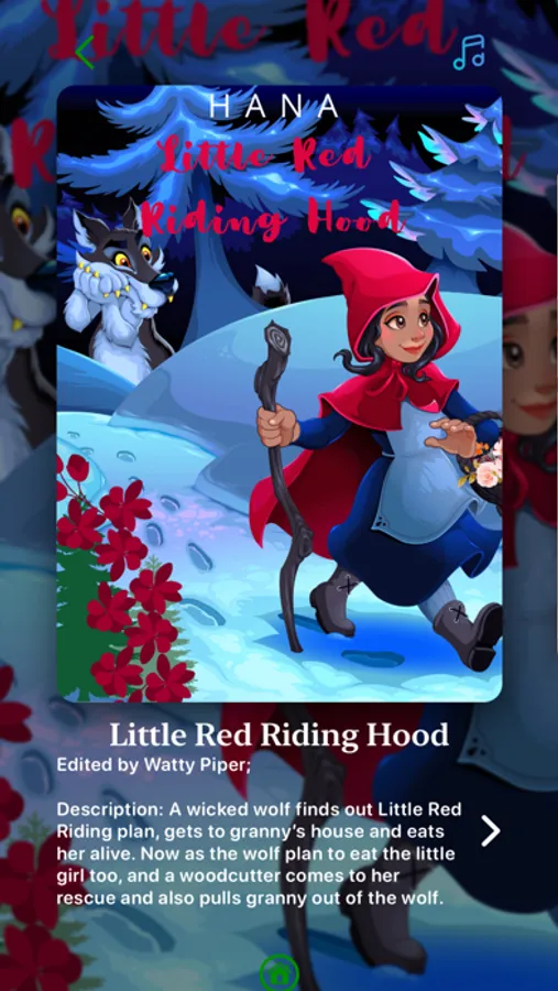Content: The stunning graphic visualization will take you to the real story world. At this stage, I added four categories with many related stories. I also added my (Hana) voiced Audio Stories so kids can enjoy listening to me as a friend I hope.