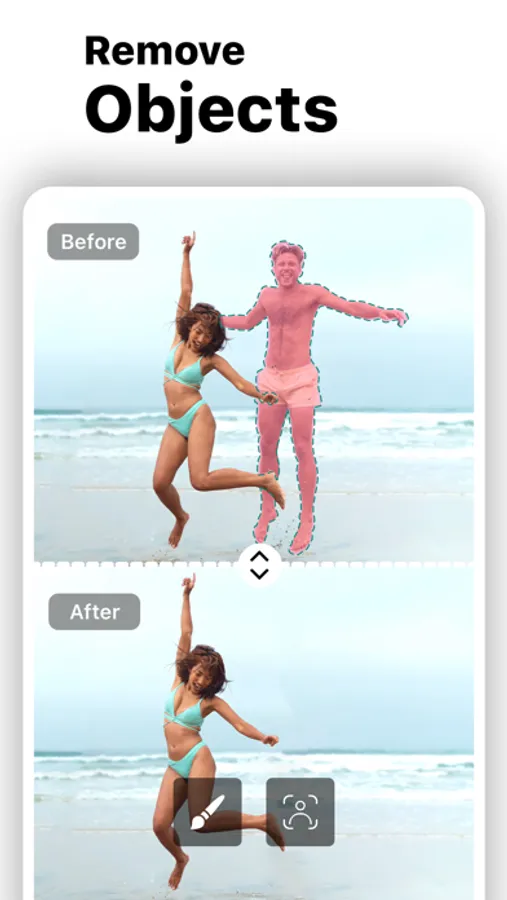 Our advanced AI technology can guess and draw the missing part of the photo with super realistic results. This app will be very useful in using to remove objects, people, blemishes, pimples, acne...