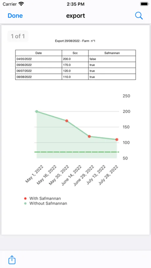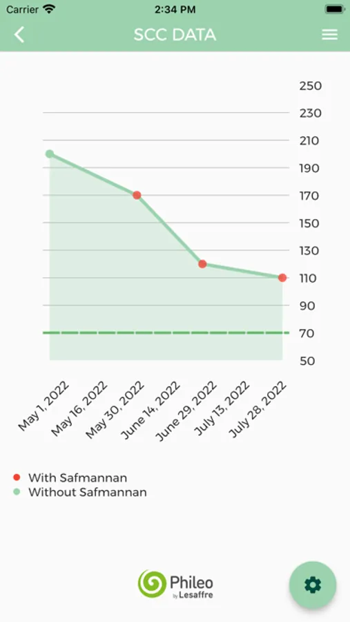 Allows creating of different farms and save all the data for easy monitoring by consultants. Builds graphs over time to compare different strategies for SCC control.