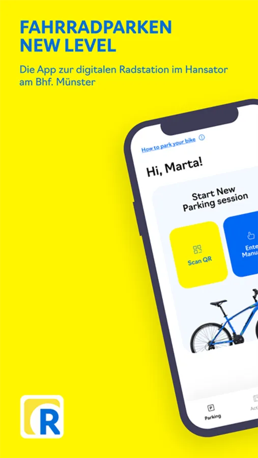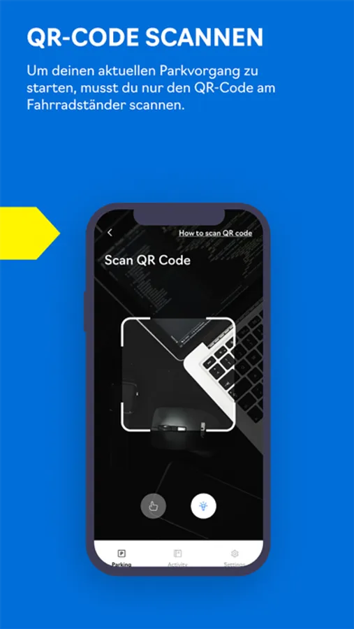 4) QR-Code am Fahrradständer scannen, um den Parkvorgang zu starten.