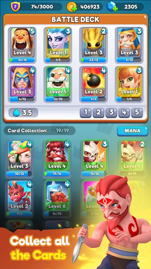 Collect cards, improve your deck and unlock powerful heroes to progress through the Realms of Battle and become the ultimate player.