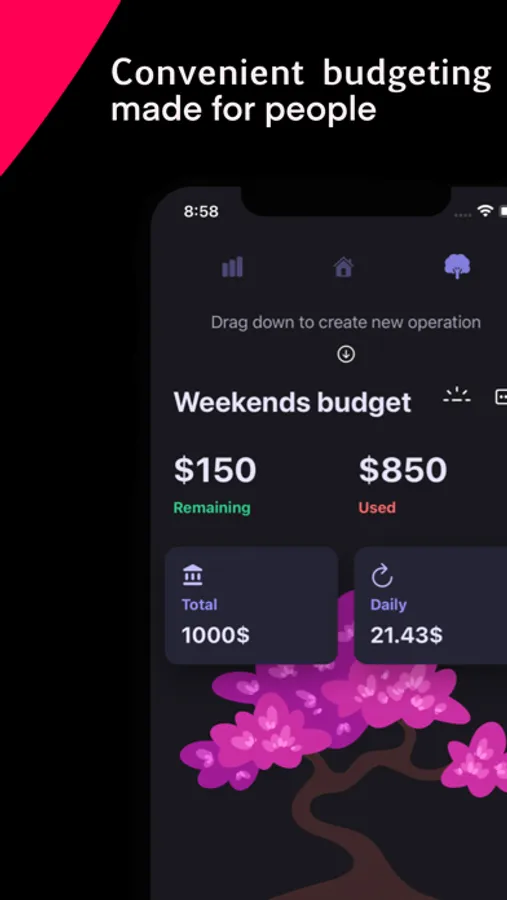 Bonsai represents the money tree. Set financial goals, track your money flow, notice your financial habits. Just using your phone, you can manage all your cashflow more easy and detailed.