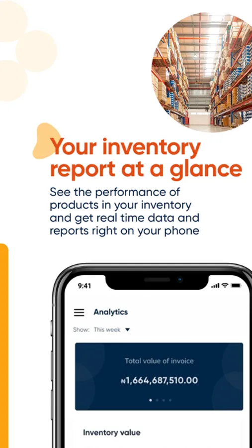 Know how each product is performing in your inventory right on your phone. Our dashboard gives an overview of how your inventory is doing, including top selling and fast moving products.