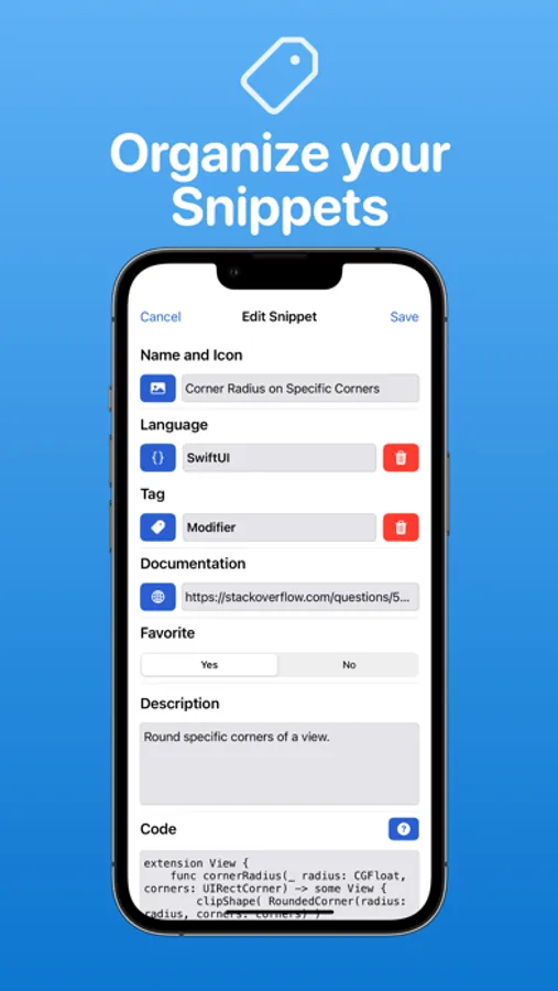 Snippets Studio is an app where you can save code that you frequently use or want to reference later. You can create your own tags and languages to help organize your code and your snippets can also be synced to your other iCloud-enabled devices.