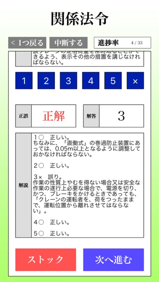 また、クレーン・デリック運転士試験は科目試験合格後にある実技試験に合格して初めて合格となります。本アプリは筆記試験合格のためのアプリであり、実技試験には対応しておりませんので、その点はご了承ください。