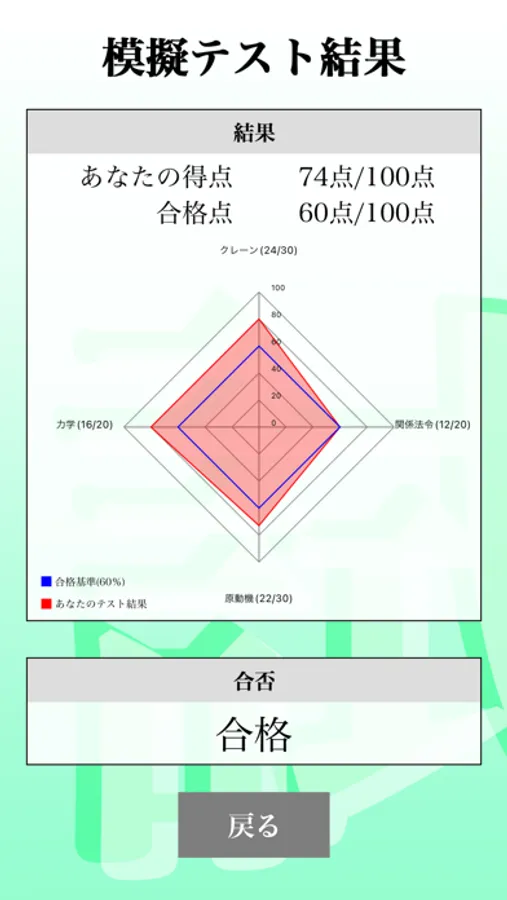 本アプリでは何度でも違う試験を行うことができ、正確に自分の実力を測ることが可能です。