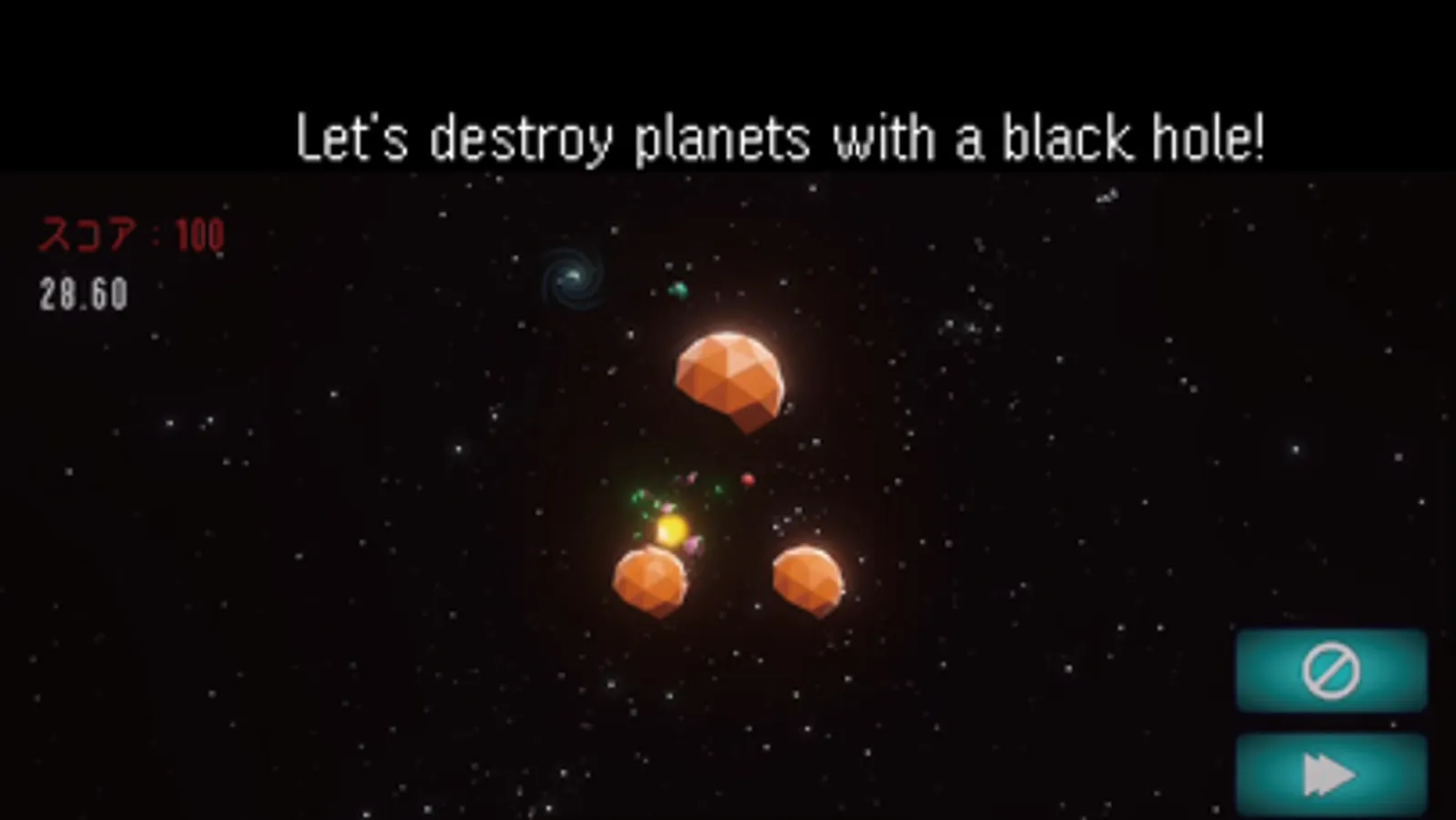 This is a simulation game to destroy planets by placing black holes in space and changing their orbits. All you have to do is decide where to place the black holes! It is a quick and easy game, so it is perfect for killing time.
