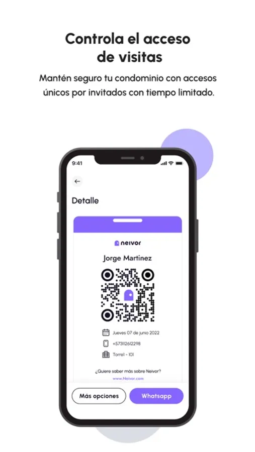 Regálale acceso a tus invitados sin que esperen en vigilancia, Neivor te permite crear códigos QR para compartirlos con tus visitantes y acceder al condominio