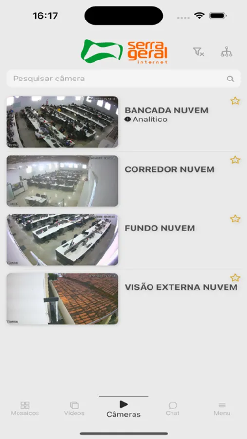 O Serra Geral Cam é um novo aplicativo de monitoramento em vídeo ao vivo, com opção de gravação, salvar vídeos e pré-alarme. Todos esses serviços estão em nuvem, oferecendo maior comodidade e segurança. ESSE APLICATIVO É EXCLUSIVO PARA CLIENTES QUE UTILIZAM A PLATAFORMA SERRA GERAL.