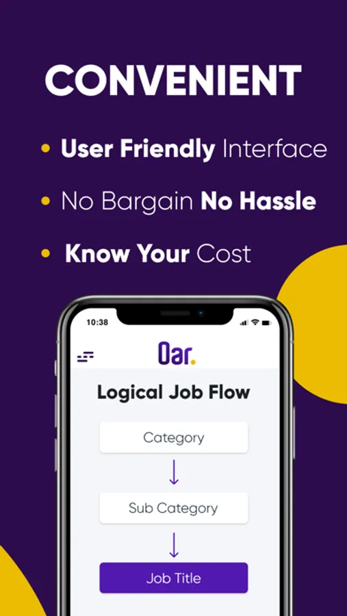 · Pay through multiple means (Cash, Oar Wallet (credit points gained as change) ). You can also share your valuable feedback by the end of each completed job.