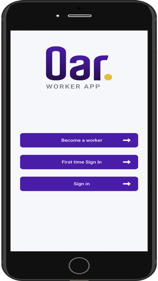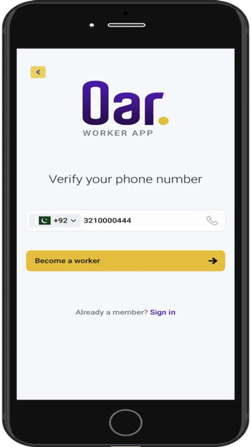 The sign-in option is for workers already registered with Oar App. They just have to enter their cell number and password to go online with the Oar App.