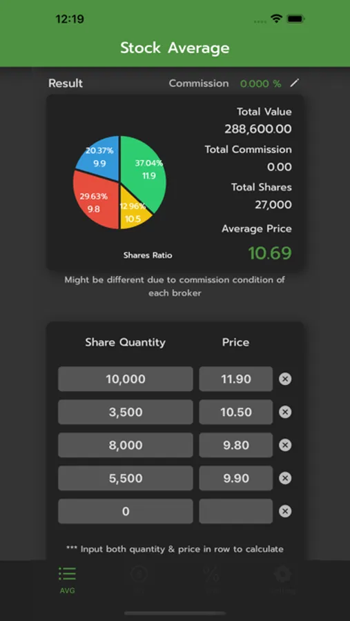 Stock Average Calculator - Support multiple stock purchases to calculate average stock price.