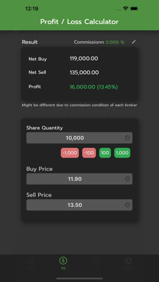 Profit / Loss Calculator - Input share quantity, buy & sell price to calculate profit / loss with percentage.