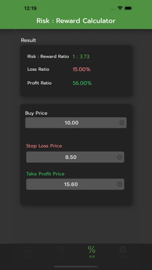 Risk / Reward Ratio Calculator - For accurate calculate purchase price with higher profit chance than loss.