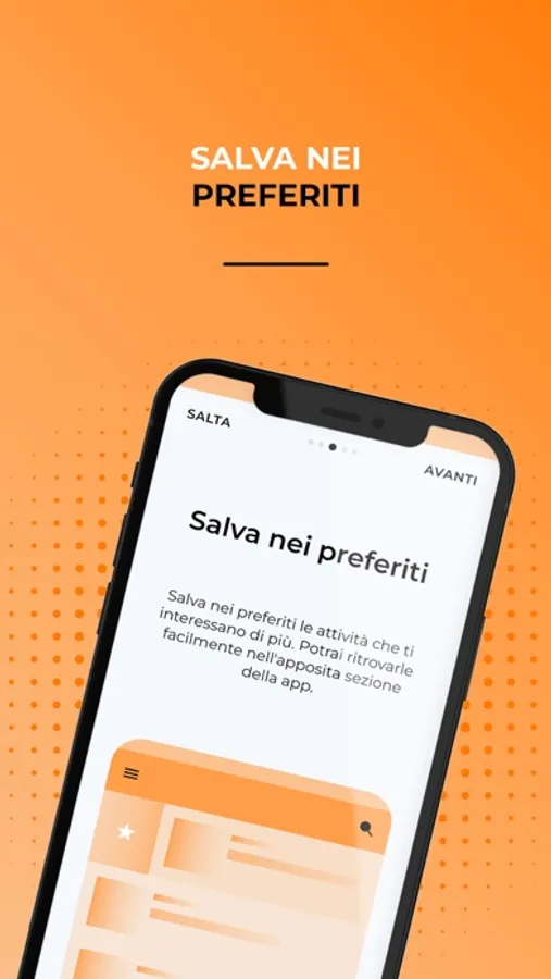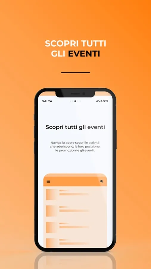Grazie alla App potrai consultare la lista degli eventi, orientarti sulla mappa, esplorare i singoli eventi e punti di interesse, conoscere le promozioni e salvare i tuoi eventi nei preferiti.
