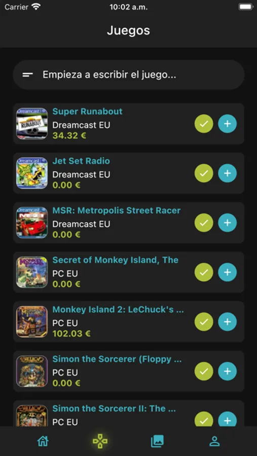 Cataloga tu colección de videojuegos y consolas actuales y retro o vintage. Busca artículos, compara precios, recibe alertas. Conecta con otros usuarios aficionados a los videojuegos, sube tus fotos y disfruta de tu afición.
