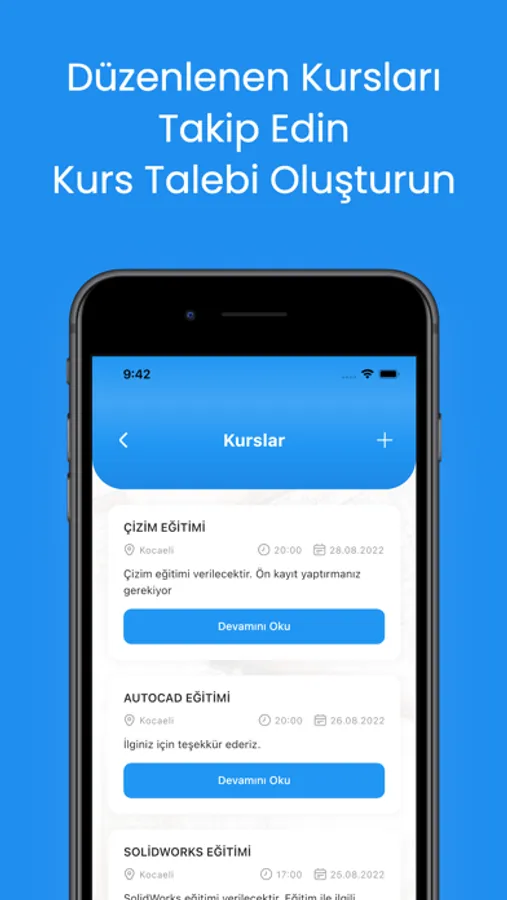 · Açılacak veya devam eden kursları görüntüleyebilir, başvurabilir veya istediğiniz kursları şubeye talep olarak iletebilirsiniz.