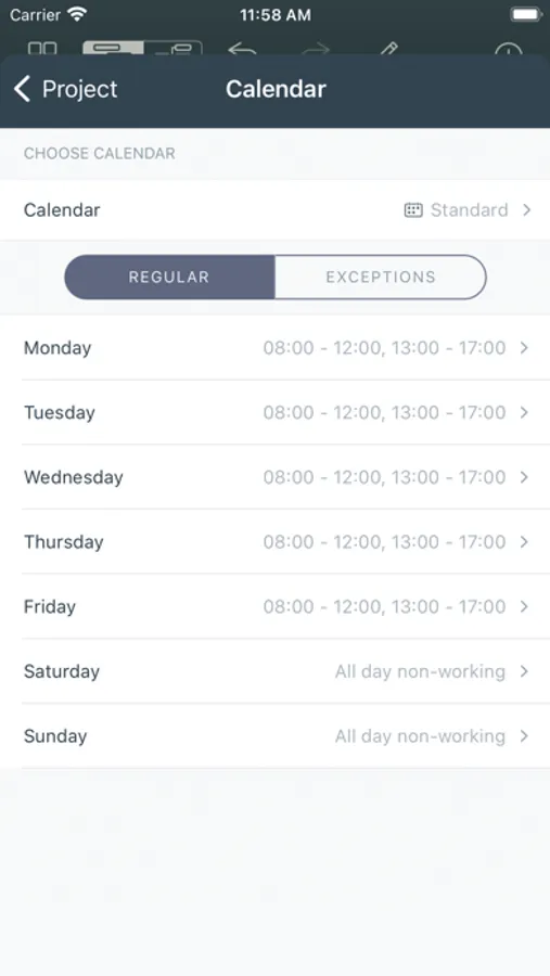 • Customized calendar: modifying work hours for entire project you can create a more realistic plan considering off-time and weekends.