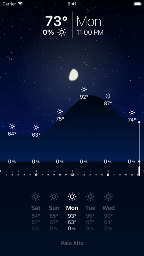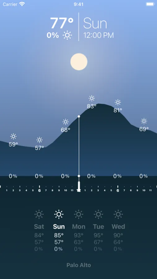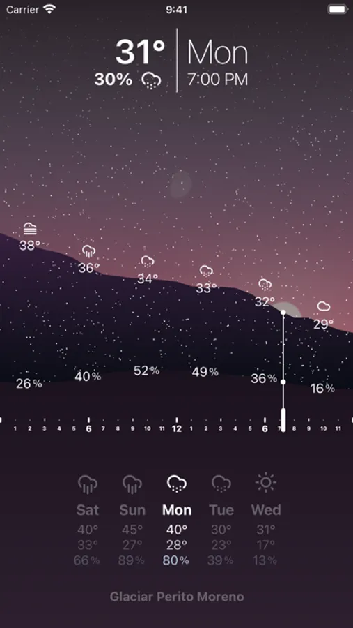 It's hard to interpret inches of rainfall or a cloud cover percentage, so Overlook lets you perceive them just like you would in the real world. Rather than checking endless lists of numbers it allows you to get a visual sense of what a day will look like.