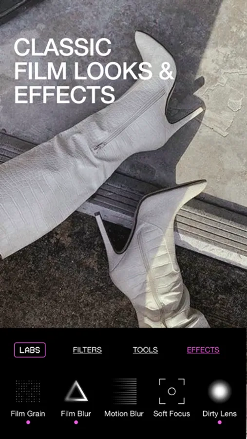 "Filters and effects designed for today. Inspired by timeless style and the most popular trendsetters around the world."