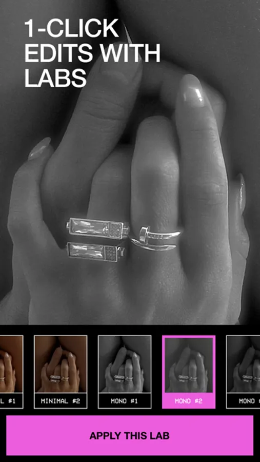 We have worked hard to create photo filters you won’t find anywhere else. It will transform your photos with just one click and give them a classic or trendy look. Just like how the best creators do their edits. LABBET includes all the filters you need for an aesthetic look - minimal, moody, timeless, vintage, film, black & white.