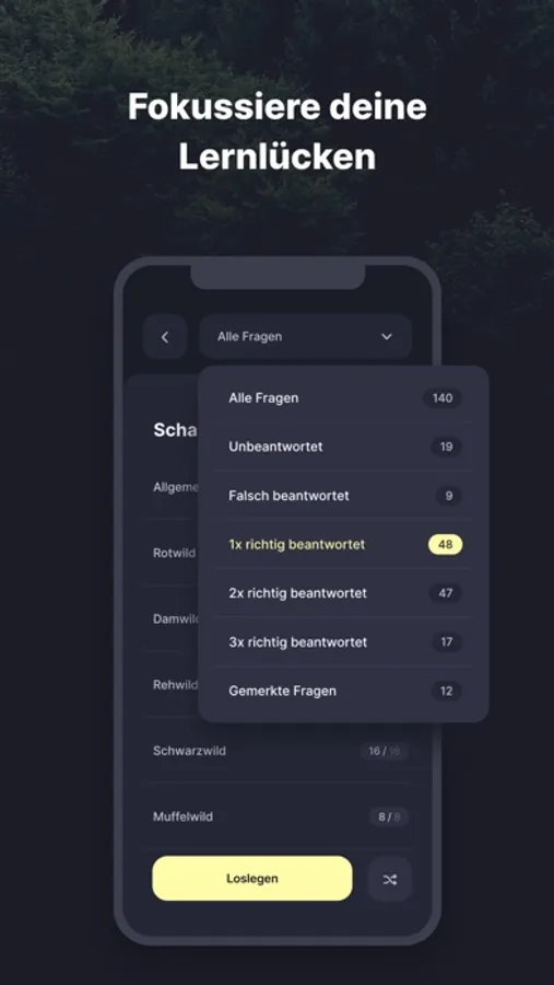 Mit unseren Fragen-Filtern lernst du bei den Wiederholungen nur noch das, wo du Lücken hast.