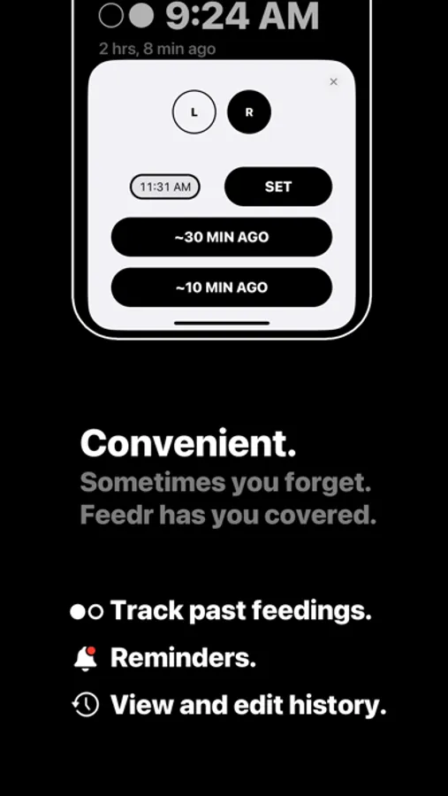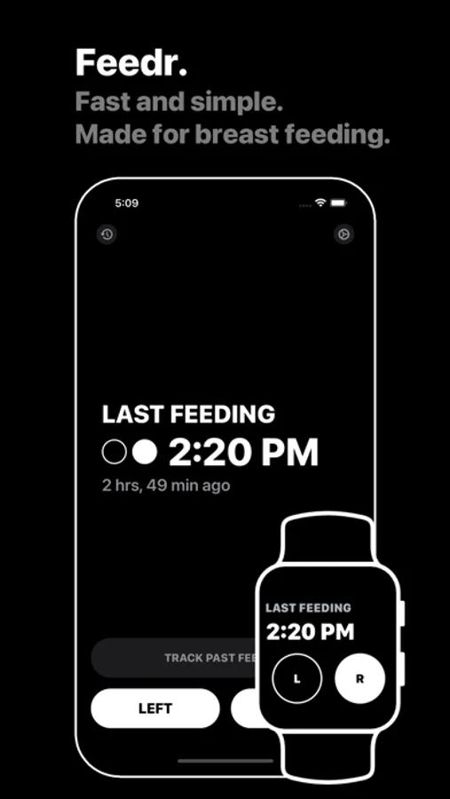 This app is of course also very convenient without an Apple Watch. Use the Feedr Lock Screen Widget or place a Widget on your Home Screen to quickly check when you last fed your baby.