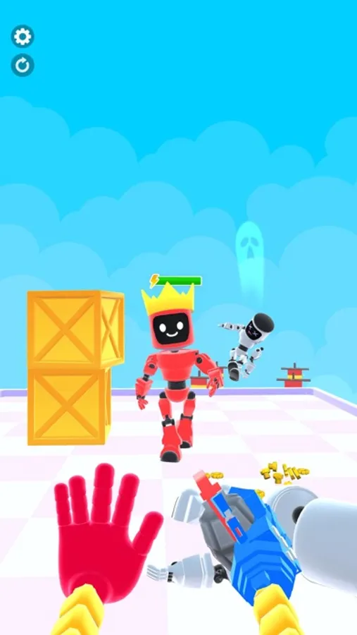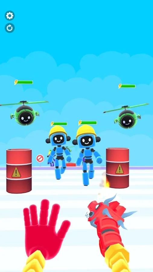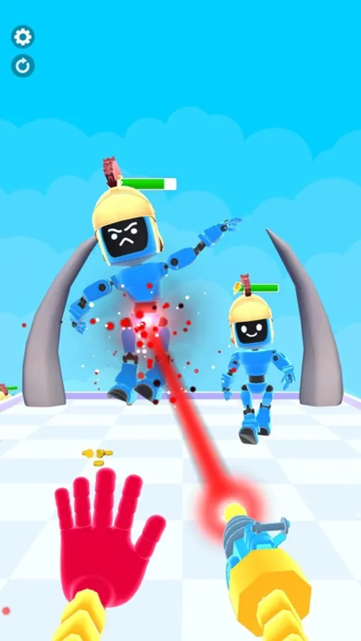 Collect robot bolts to create new superpower robotic hands. They are like magic hands in elemental games. Choose which gloves you should wear to defeat the robots. Each hand can have its own glove power. Use the super power of the magnet and electricity or take a grenade in one hand and a mace in the other.
