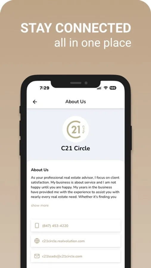 C21 Circle connects you and your real estate agent to ensure your home search journey is a success. Find the latest homes that match your must-haves, save open houses for later, schedule a tour of a home any time, and connect with your agent via C21 Circle. Plus, when you search for homes, your agent can see which listings are your favorite to help them better guide you towards your goal of home ownership!