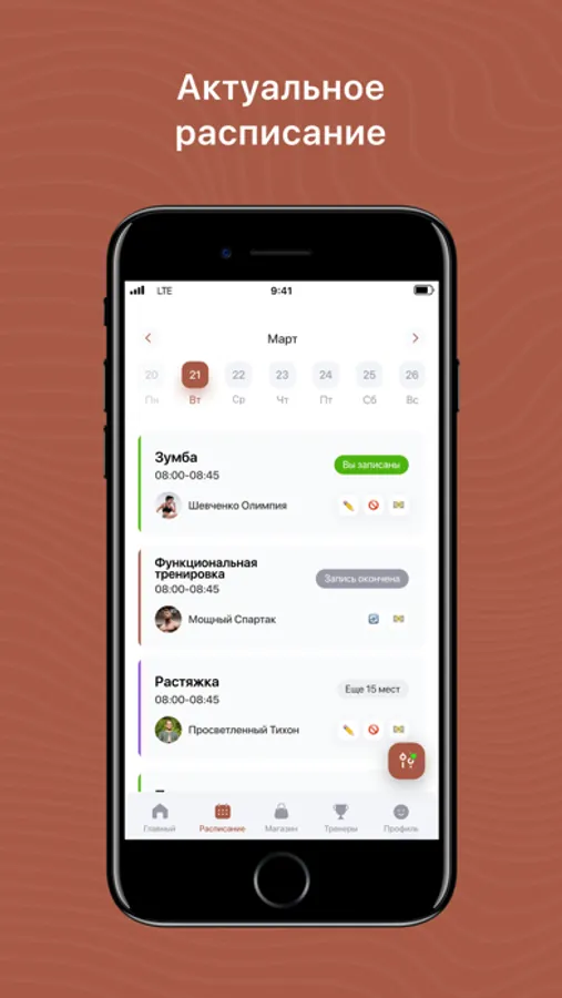 Видеть актуальное расписание тренировок и тренеров;